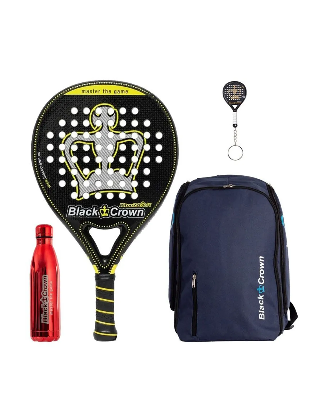 The combination of the Black Crown Piton 7.0 Soft and the Focus Blue Backpack represents a perfect balance between control and functionality. This set is designed for players who want to maximize their performance without sacrificing style or comfort. Complete your gear with useful accessories like the Black Crown bottle and keychain and enjoy a professional experience on the court.
