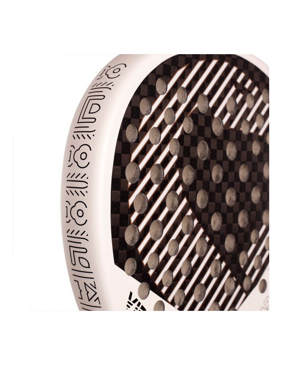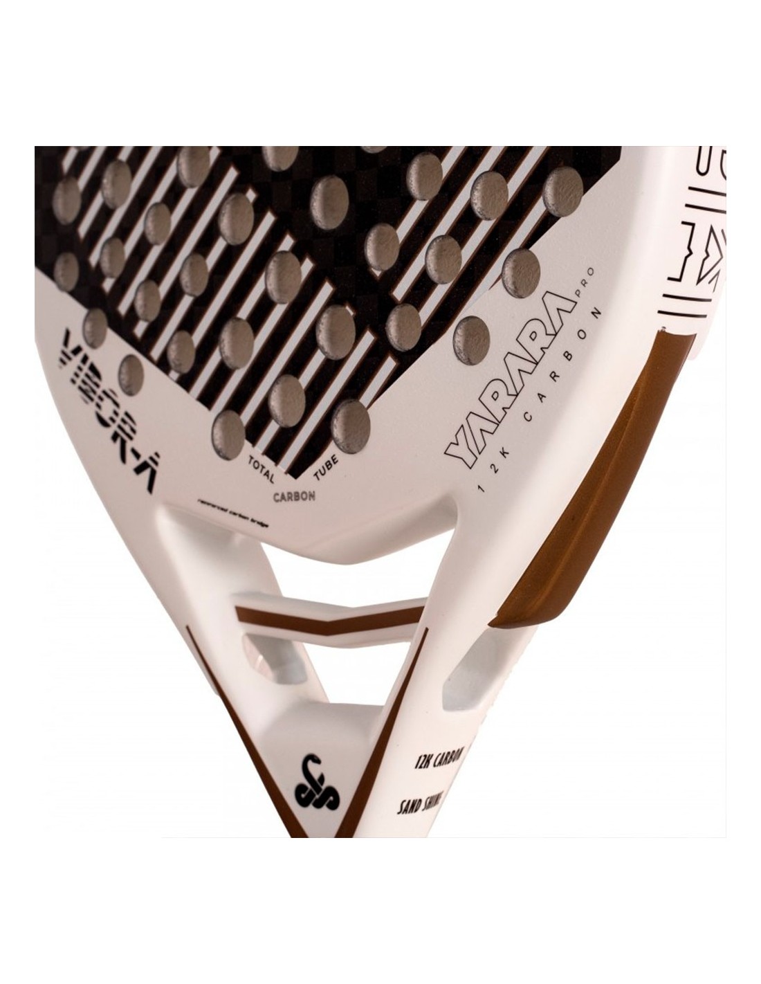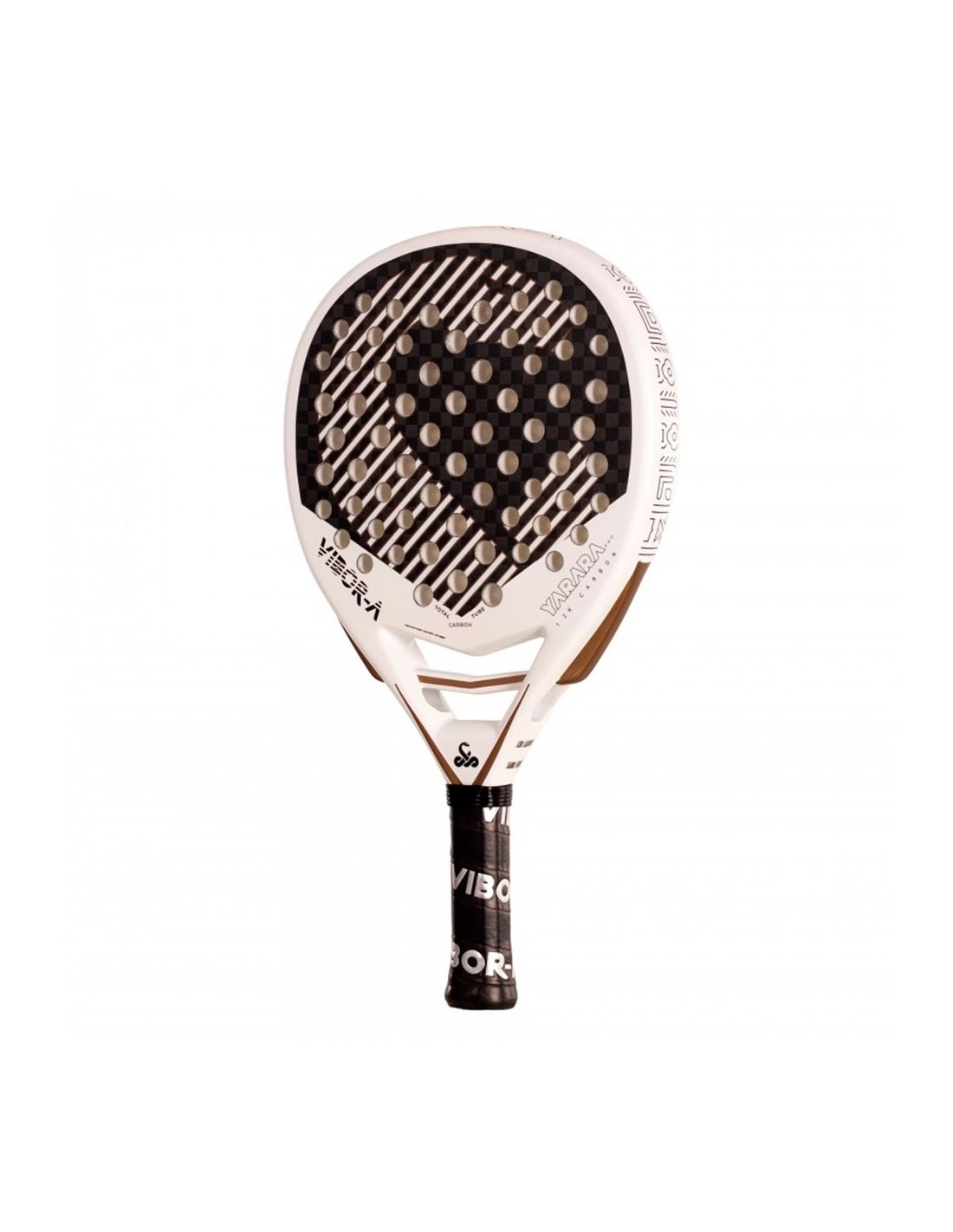 The Vibor-A Yarara Pro White is part of the 2025 collection, and represents the innovations of this new line of the brand. This model features a renewed mold with lateral perforations, improving aerodynamics and hitting. The biggest novelty lies in its reactive photochromic finish , which changes the white color of the racket to a pinkish gray under UVA rays, returning to its original tone at the end of the exposure.