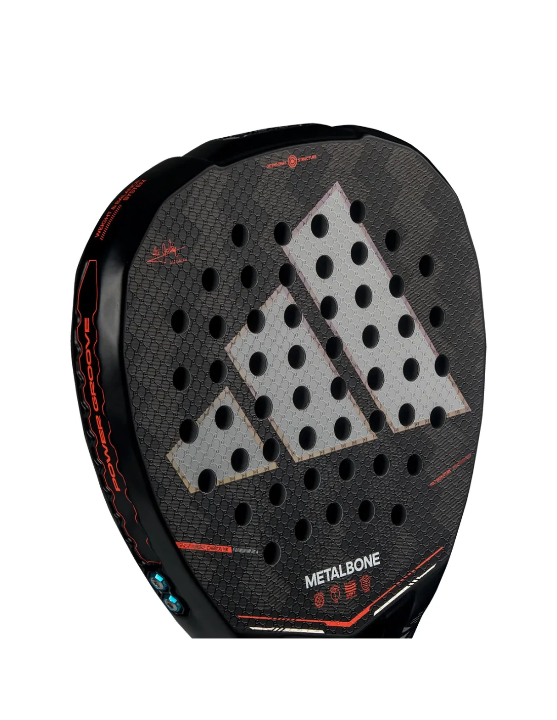 The Metalbone 2026 from Adidas is synonymous with innovation and performance in the world of padel. As the official Racket of Ale Galán, this technological gem is designed to offer unmatched power and precise control. Its diamond-shaped design and elevated sweet spot make it ideal for players looking to dominate the net with an offensive game. Thanks to its exclusive Weight & Balance System, you can adjust its weight between 345 and 360 grams (+/-11.2 g), allowing you to customize the balance according to your playing style. Made with aluminized carbon 16k, this Racket guarantees exceptional stiffness and durability that withstands the most demanding matches. Its polyhedral Low Poly design provides a firmer structure, increasing the power of each shot without sacrificing precision.