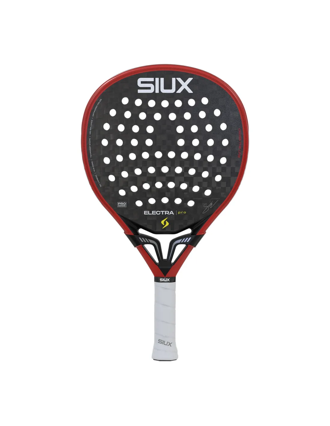 La Siux Electra Pro 2026 Fire Red est une raquette qui laisse une empreinte dès le premier coup. Son design en noir avec des détails en rouge feu capture l'essence du jeu de Franco Stupaczuk. Avec une finition mate et sablée, cette raquette offre non seulement un toucher exceptionnel, mais se distingue également par son esthétique Premium tant sur le terrain qu'en dehors. C'est le choix parfait pour ceux qui recherchent une performance supérieure, du style et un caractère véritablement professionnel.