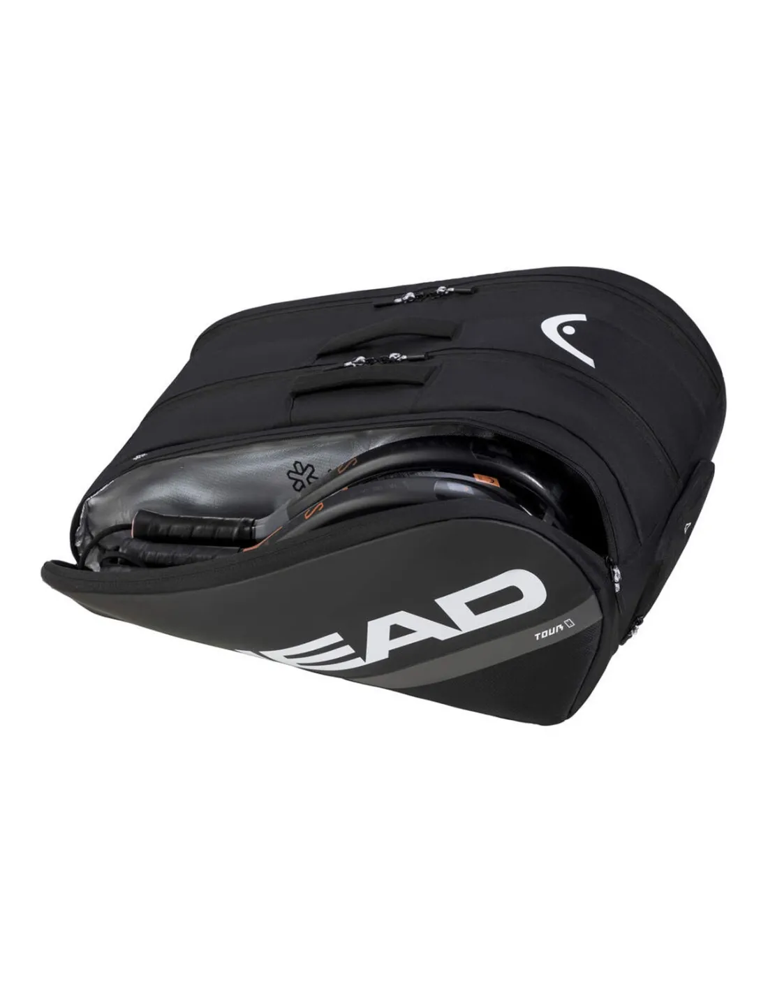 - Tre scomparti principali, con spazio per un massimo di sette racchette