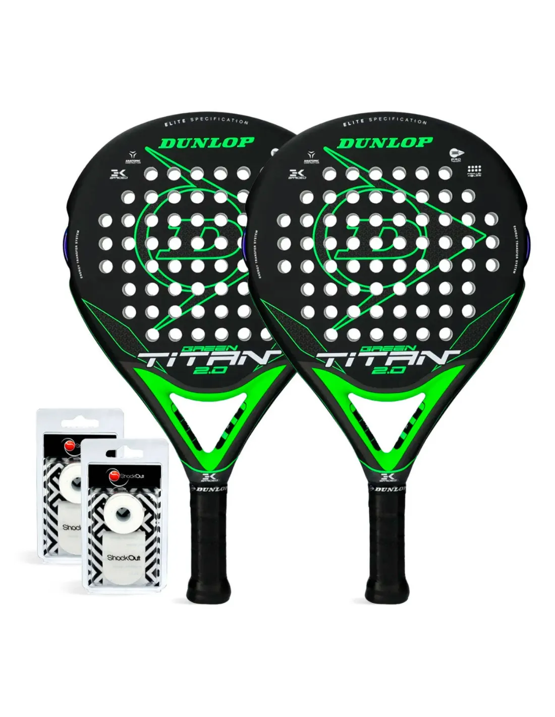 Attenzione, giocatori appassionati! Il Dunlop Titan Green Duo Pack 2 è proprio ciò di cui avete bisogno per portare il vostro gioco a un livello superiore. Questo pacchetto non include solo due racchette da padel di alta qualità, ma include anche due speciali protezioni Shockout per garantire una presa perfetta in ogni partita.