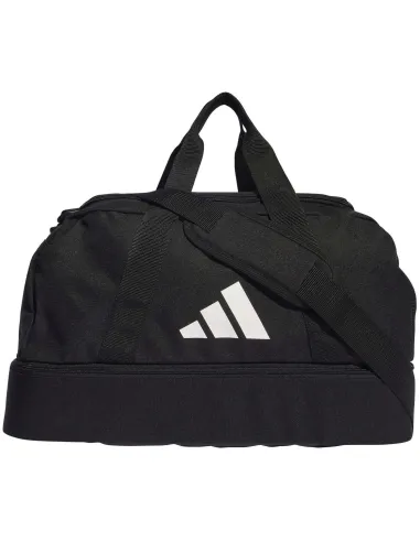 A Adidas Tiro League é uma bolsa desportiva desenhada para facilitar o transporte do seu equipamento de treino. Com 30,75 litros de capacidade, oferece um design durável e elegante. Incorpora um compartimento rígido na parte inferior para separar sapatos ou roupas molhadas, e seu bolso lateral de malha é ideal para guardar uma garrafa ou lanches. Fabricado em poliéster 100% reciclado , é muito confortável de transportar graças às suas alças e alça acolchoada ajustável.