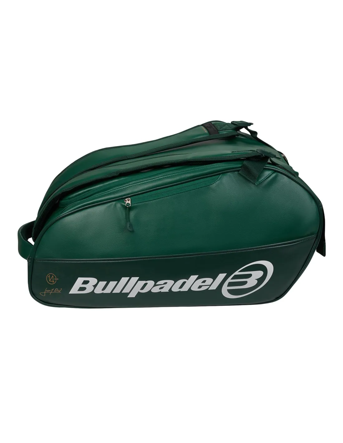 O Saco Icon da Bullpadel em verde é uma obra-prima de design funcional. Inspirado no lendário Juan Martín Díaz, este paletero combina elegância e praticidade. Confeccionado em couro sintético de alta qualidade, oferece um acabamento sofisticado e durável, ideal para os jogadores mais exigentes. Suas dimensões de 60 x 30 x 40 cm proporcionam um espaço generoso e bem organizado. Possui um compartimento principal espaçoso, dois compartimentos térmicos que podem acomodar até quatro raquetes, e uma área ventilada para roupas ou calçados. Além disso, inclui um bolso lateral externo de fácil acesso para pequenos acessórios ou pertences pessoais. Seu sistema de transporte ergonômico, com alças acolchoadas e correias ajustáveis, garante conforto mesmo nos deslocamentos mais longos.