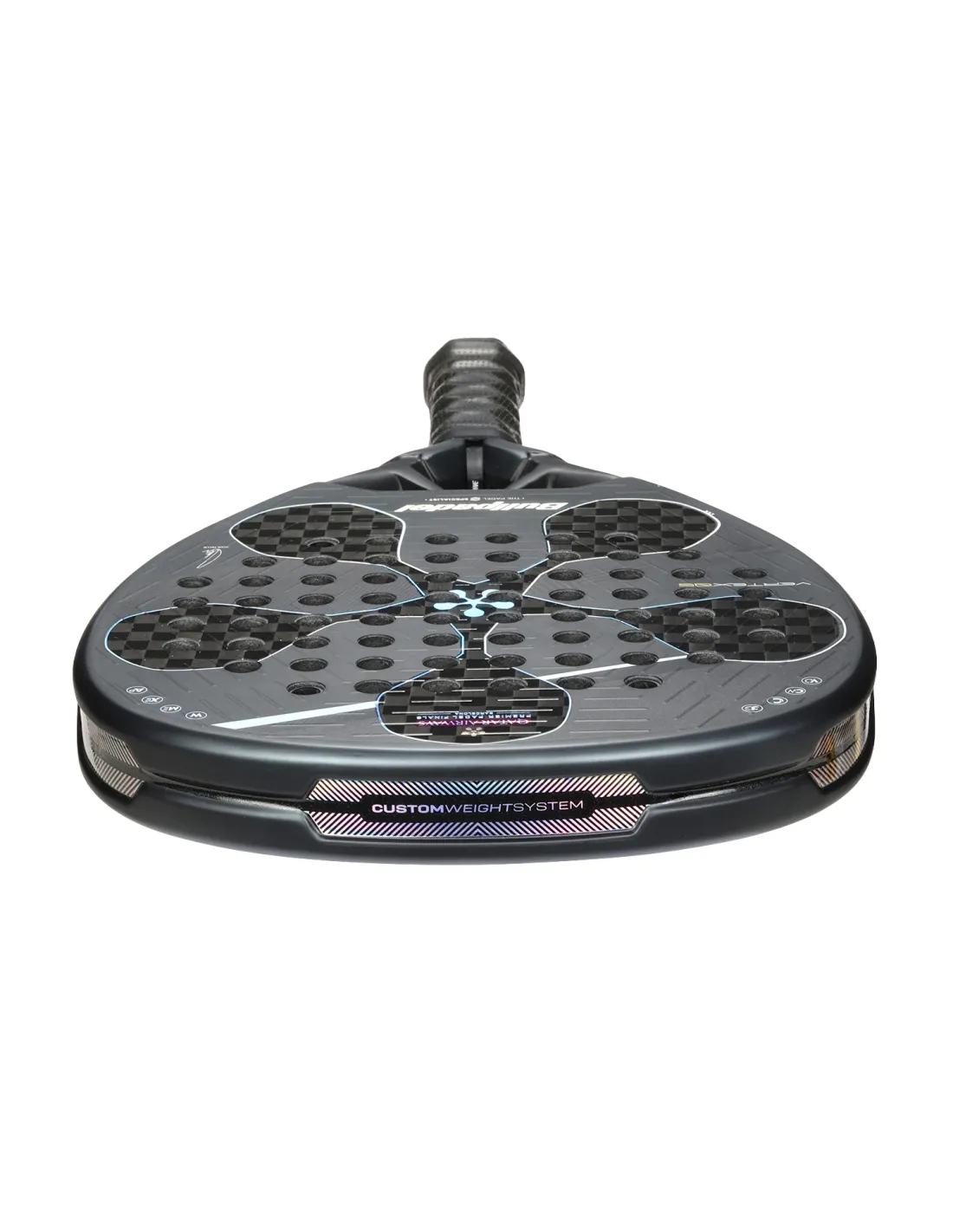 Construída com X-tend Carbon 12k nas faces, um núcleo Multieva de tripla densidade e um Carbontube na Marco, esta Raquete oferece uma resposta potente, sólida e altamente reativa. Sua superfície rugosa Top Spin facilita a criação de efeitos pronunciados, enquanto o molde Vertex e seu coração renovado otimizam a transferência de energia em cada impacto.