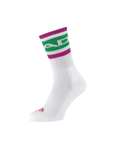 As Meias Head 1P Crew, com seu design de cano alto em branco e um elegante detalhe bicolor, são a escolha ideal para quem valoriza o conforto em esportes como o padel.