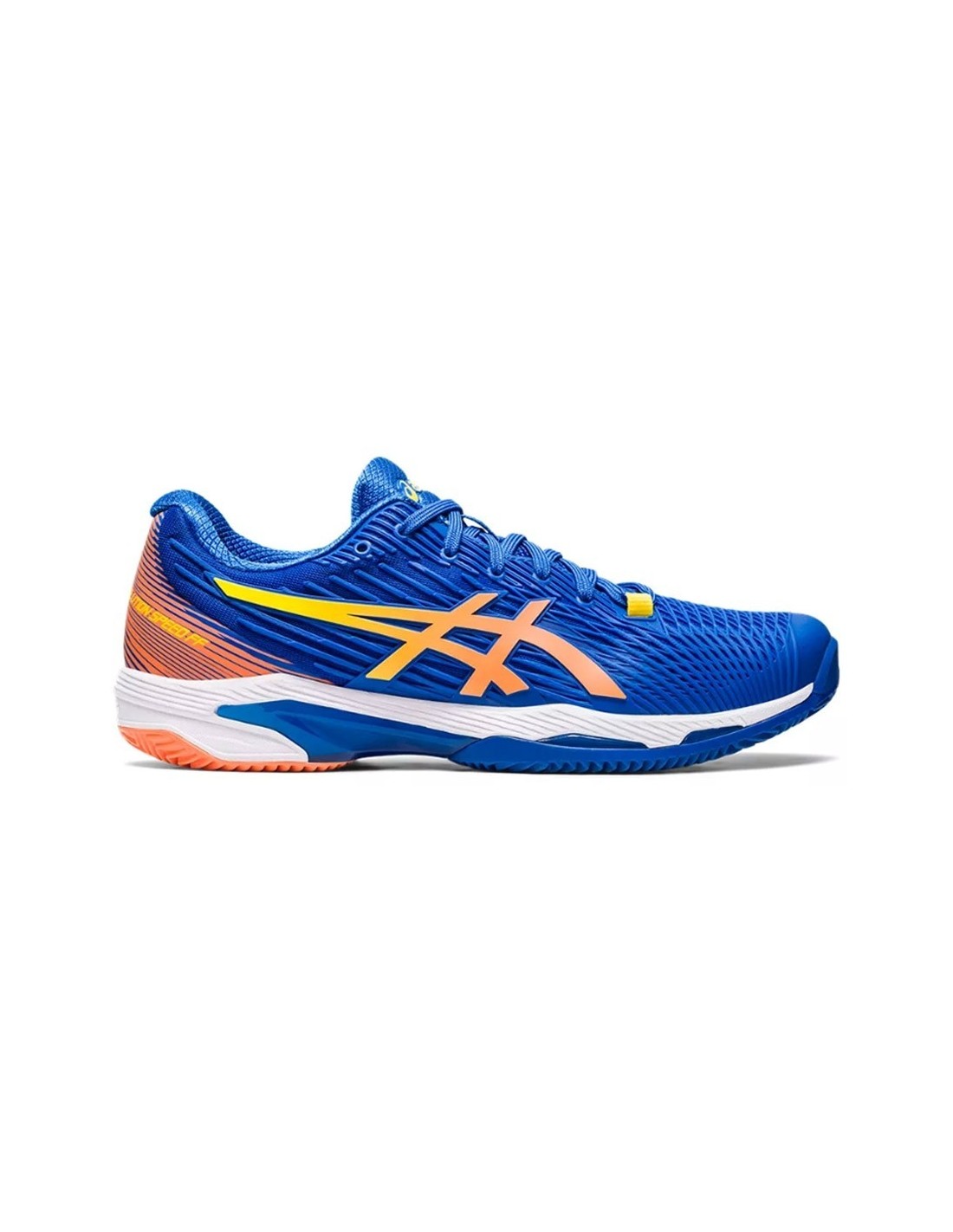Tênis Asics Solution Speed Ff 2 Clay em azul e laranja.